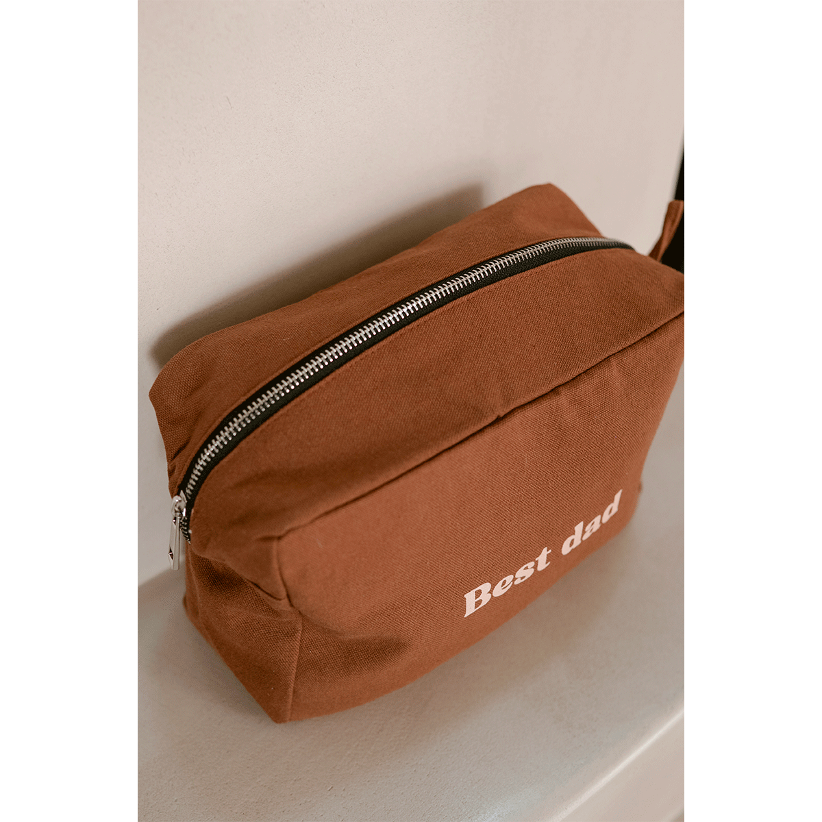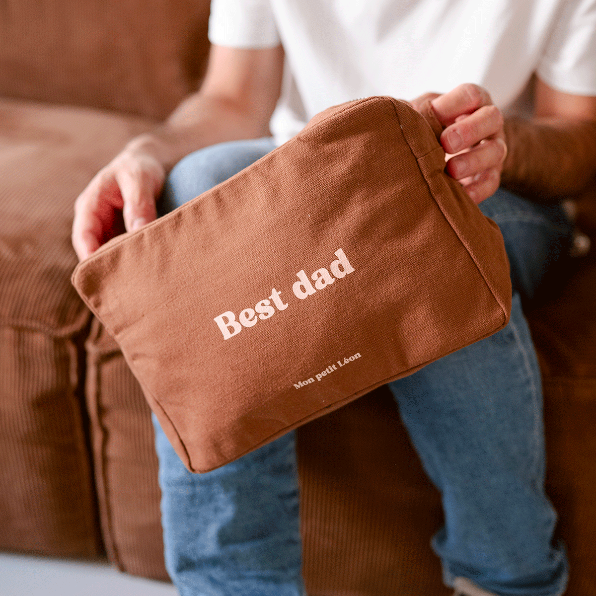 Une trousse de toilette en toile de coton épaisse et entièrement doublée en déperlant à l'intérieur.