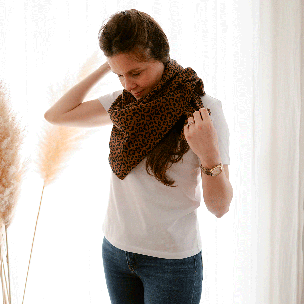 Avec notre motif iconique petits coeurs, ou encore les motifs toux doux branchages, le foulard, dans sa superbe gaze de coton, apportera énormément de douceur à une tenue.