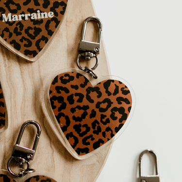 Notre coeur iconique s'habille de léopard marron foncé pour un porte-clé trop joli à offrir ou à s'offrir !