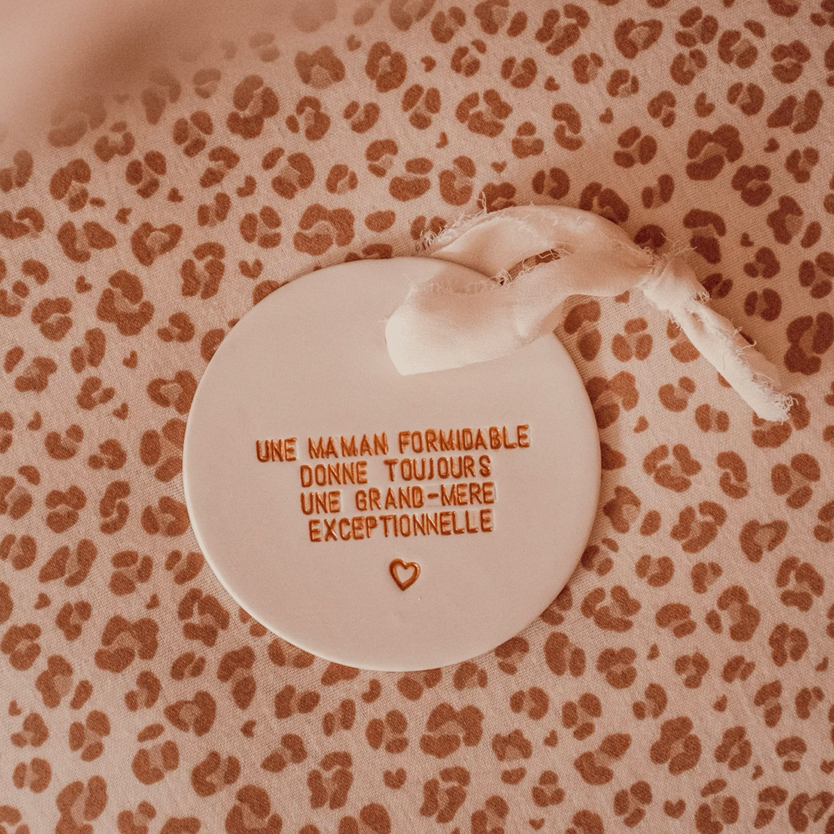 Un médaillon entièrement réalisé à la main par Camille "La dinette d'Alberte" en très petites quantités.