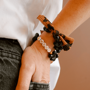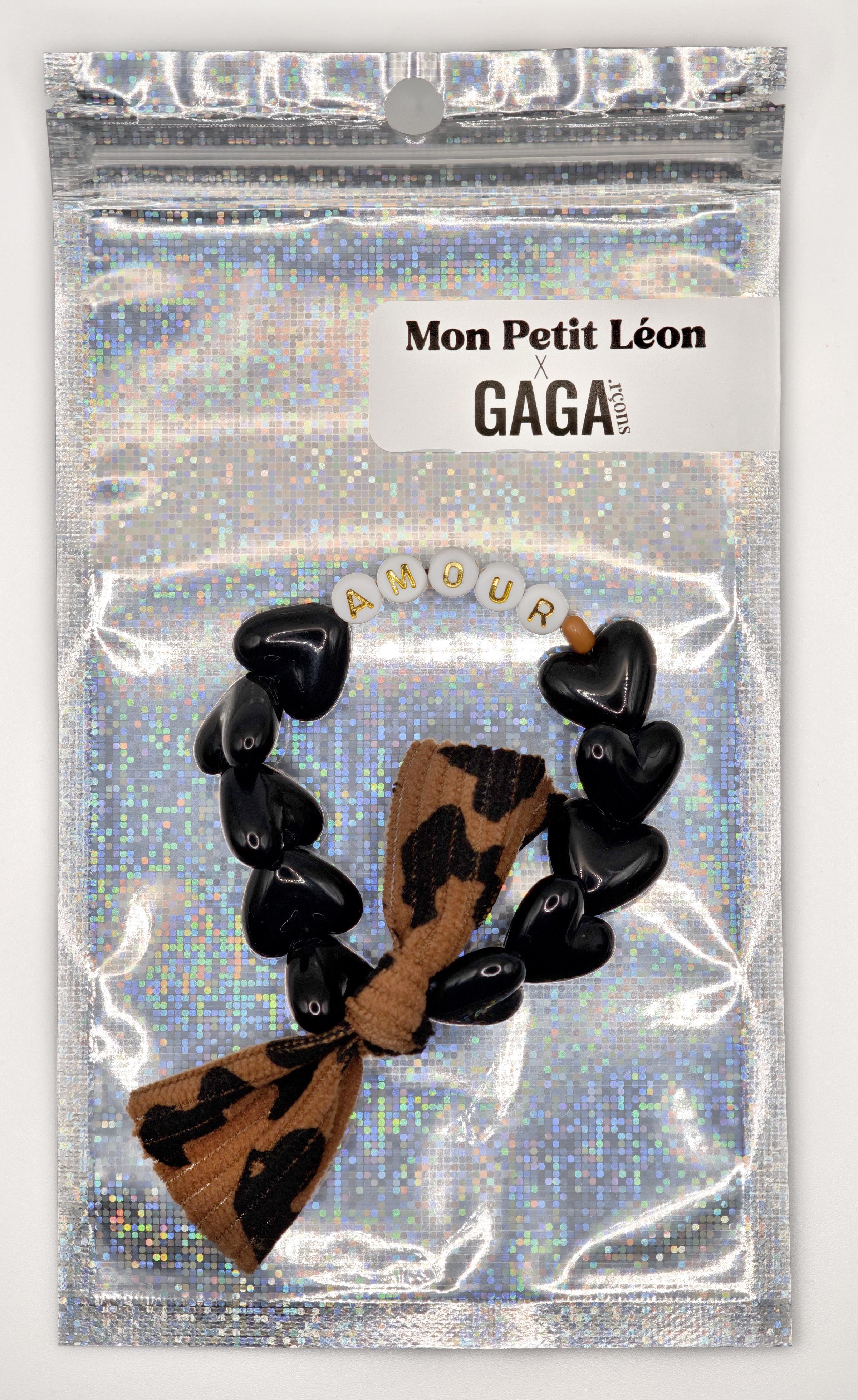 Bracelet Femme AMOUR - Maxi Coeurs Noir & Noeud Léopard