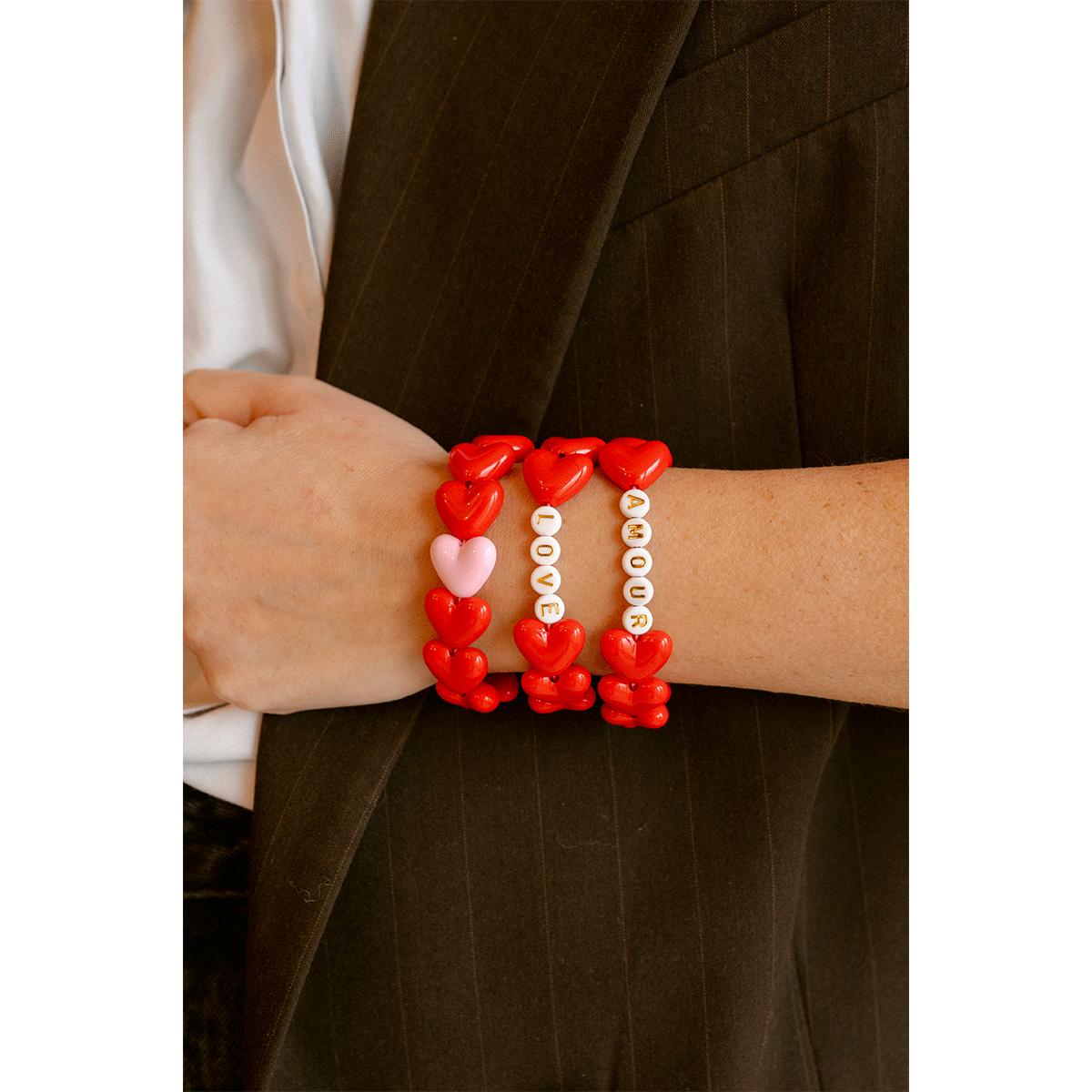 Bracelet Femme AMOUR - Maxi coeurs Rouge