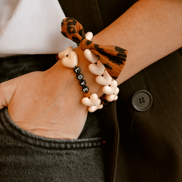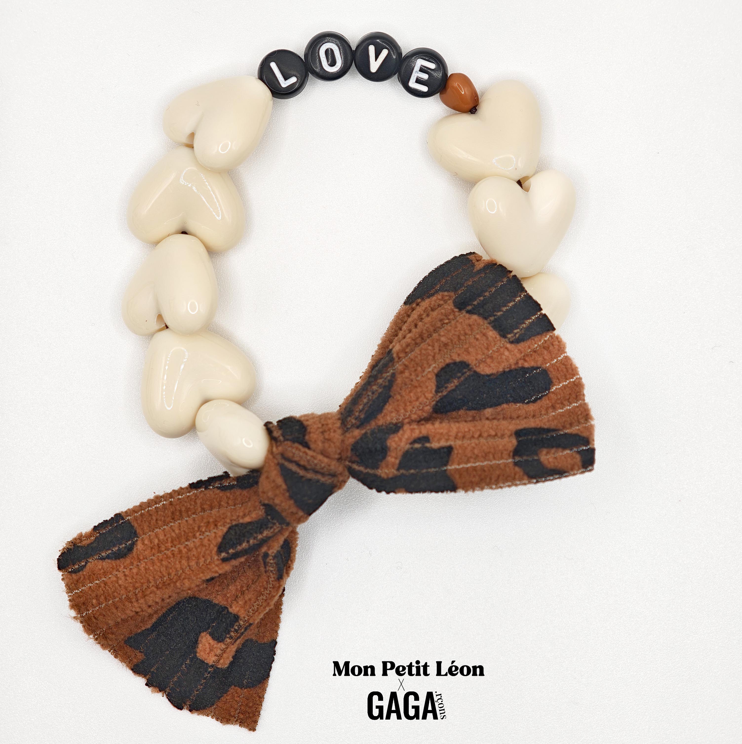 Bracelet Femme LOVE - Maxi Coeurs Beige & Noeud Léopard