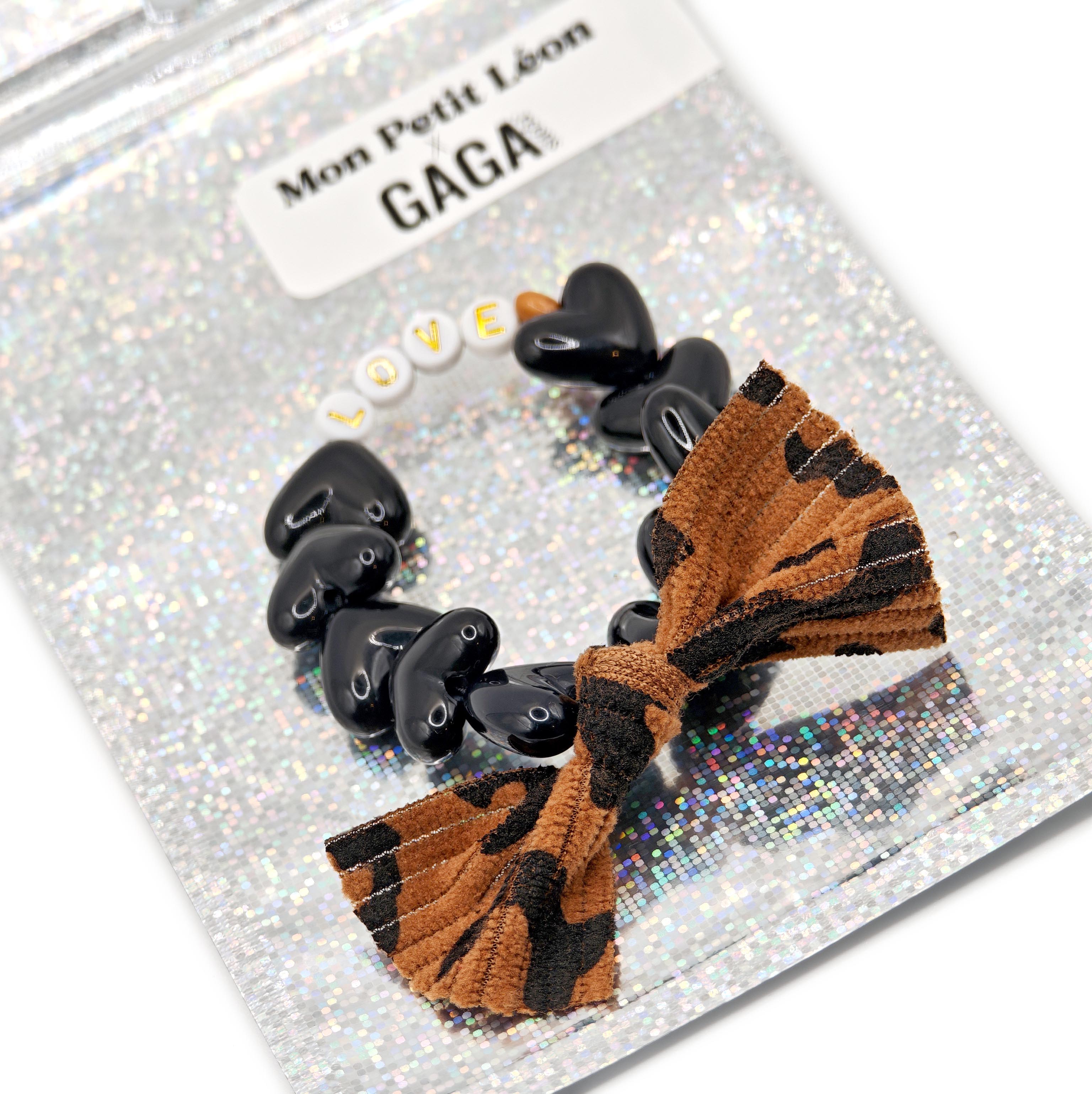 Bracelet GAGA noir avec son maxi nœud léopard.