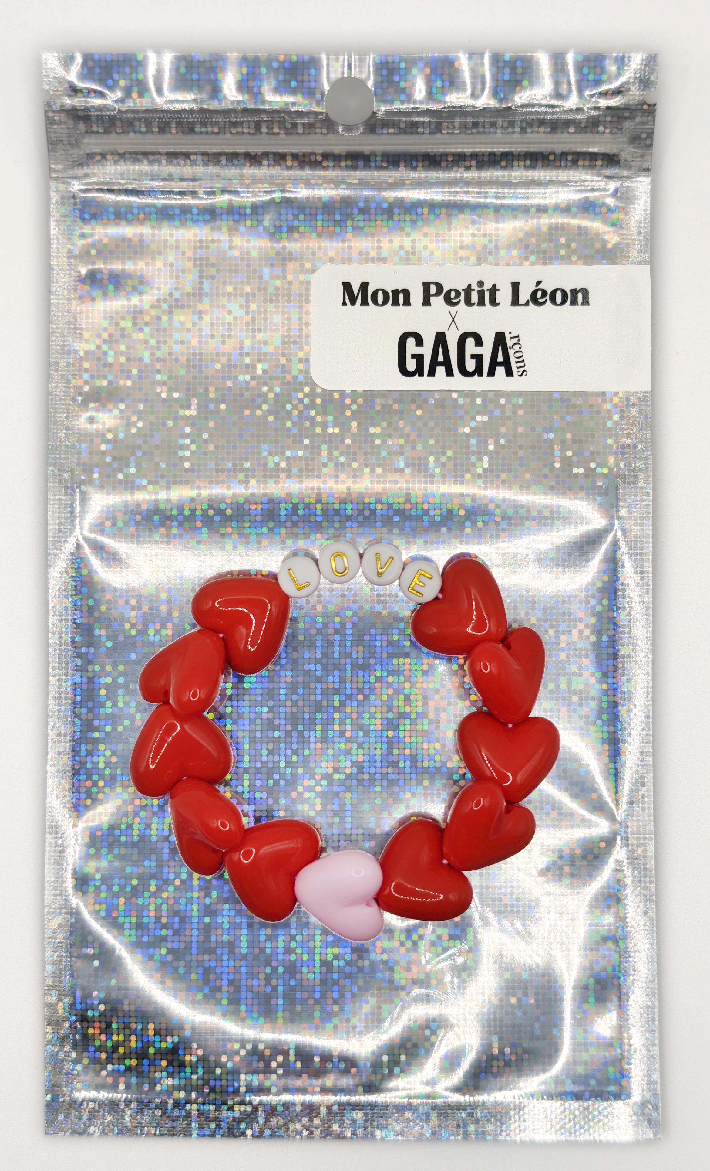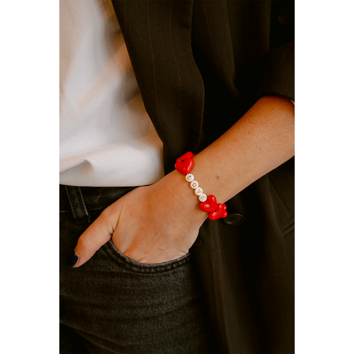 Bracelet Femme LOVE - Maxi coeurs Rouge