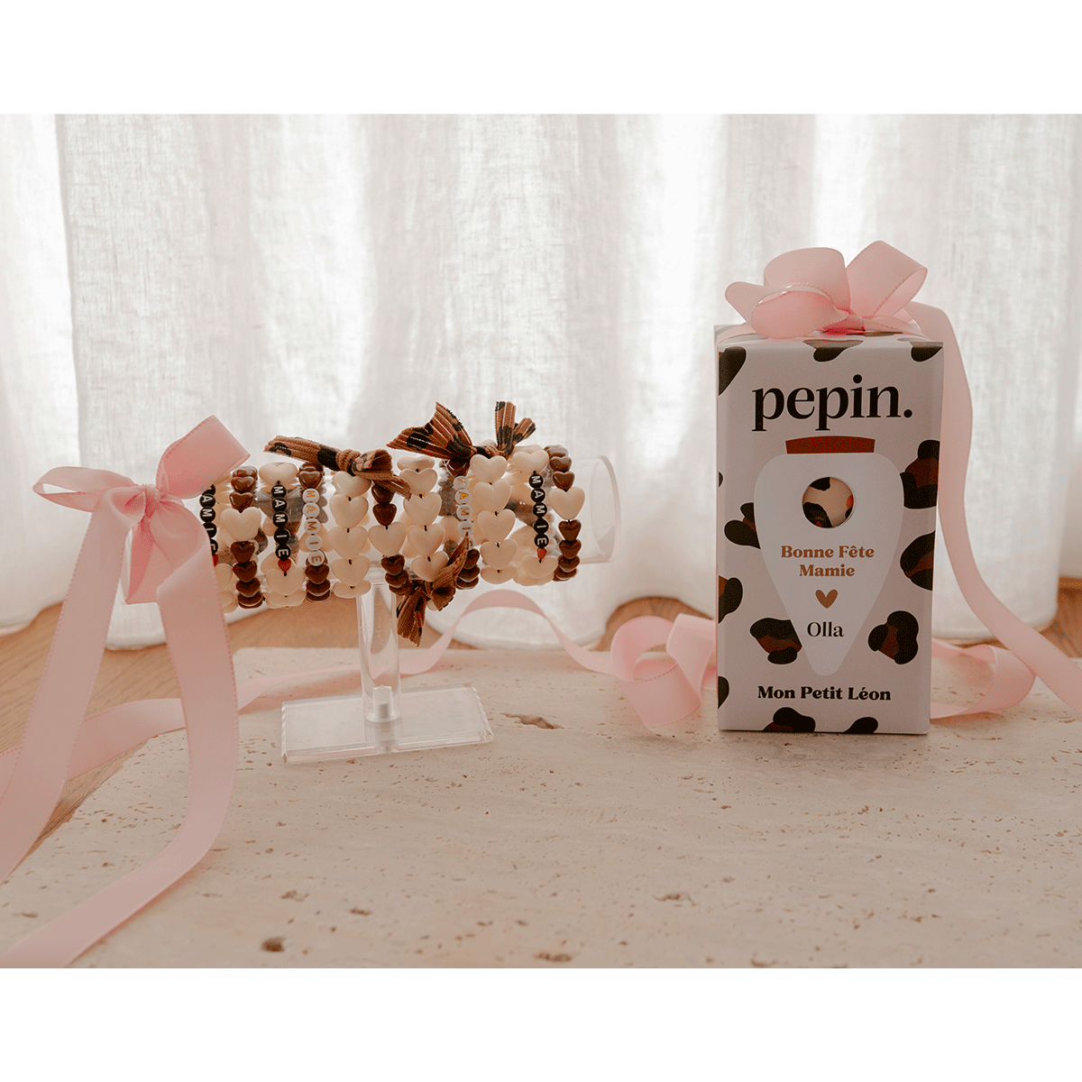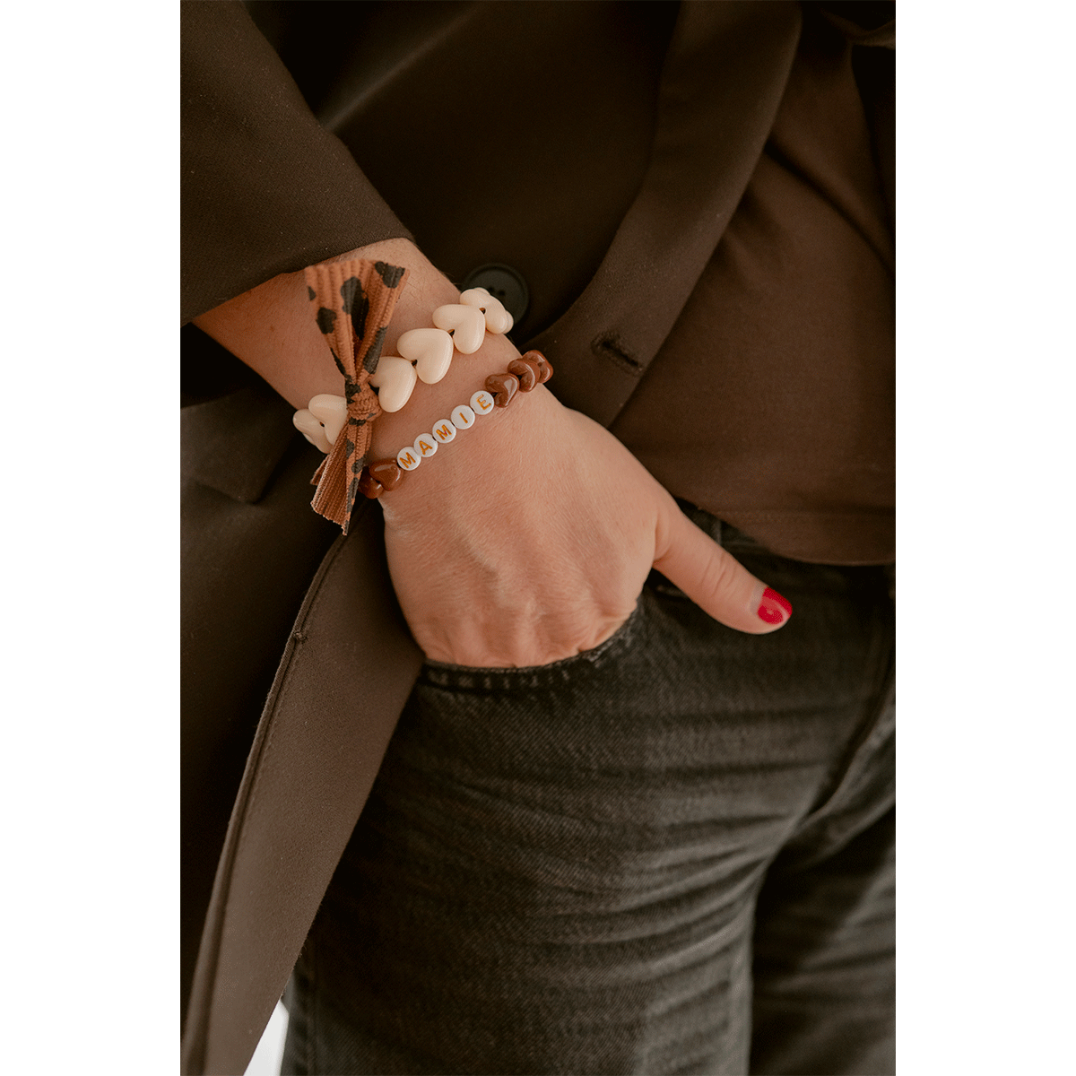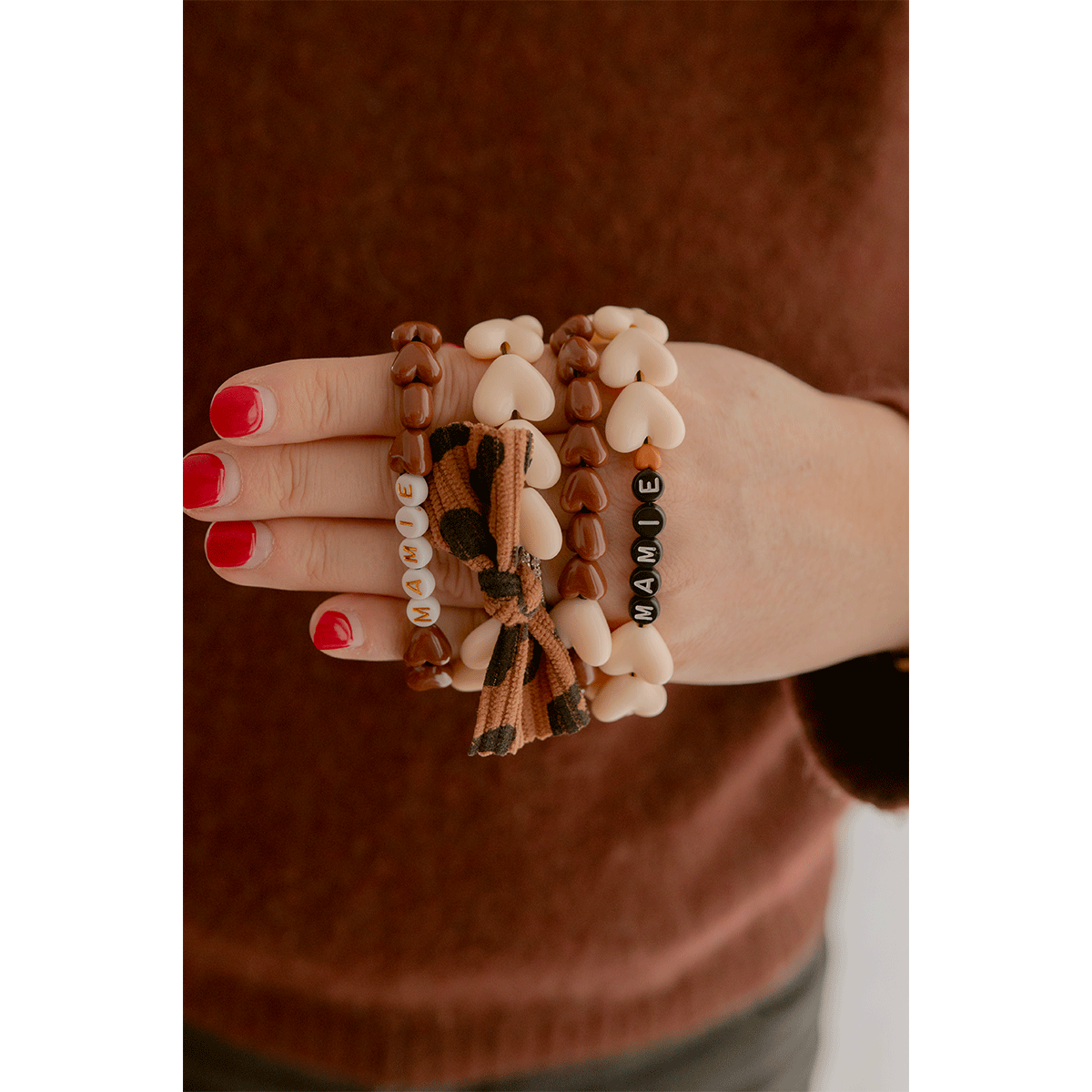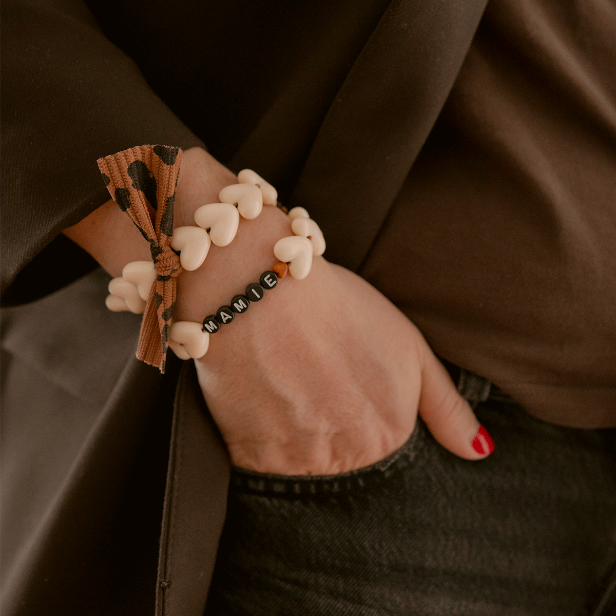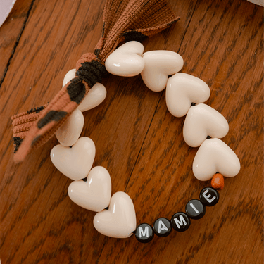 Bracelet Femme MAMIE - Maxi Coeurs Beige & Noeud Léopard