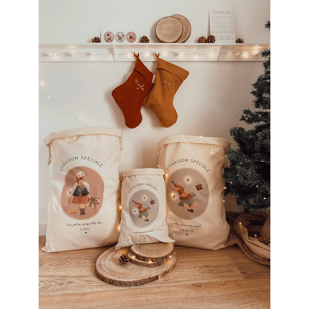 Chaussette de Noël gaze de coton