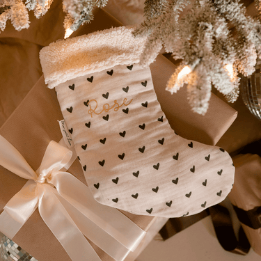 Chaussette de Noël moumoute - Petits coeurs noirs