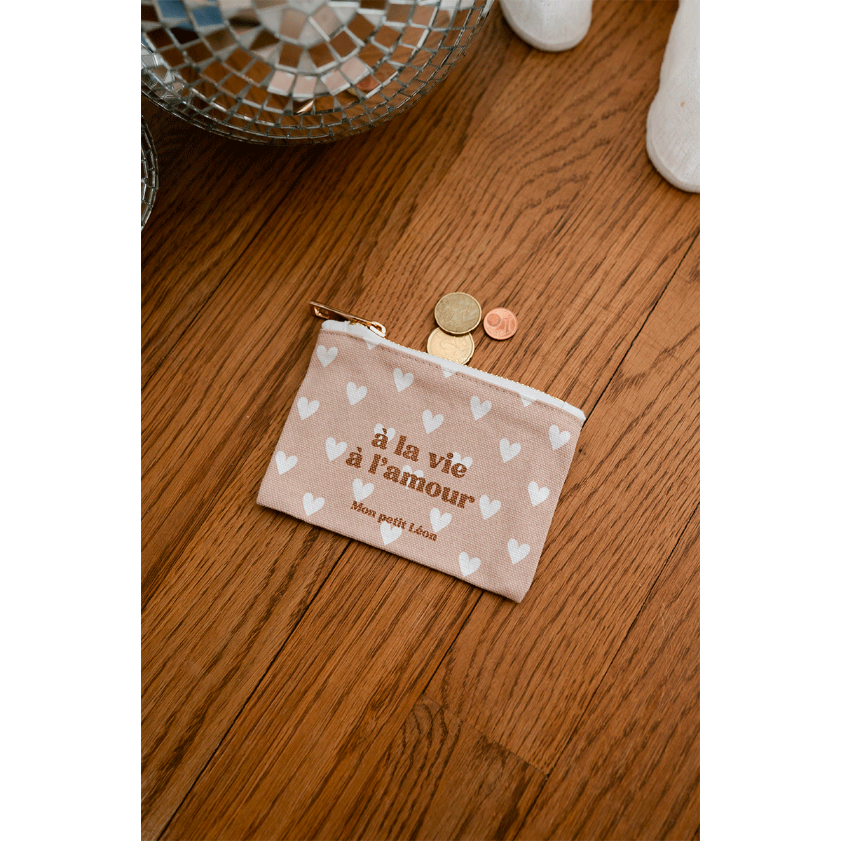 Porte-monnaie coton - Coeurs beiges, à la vie à l'amour