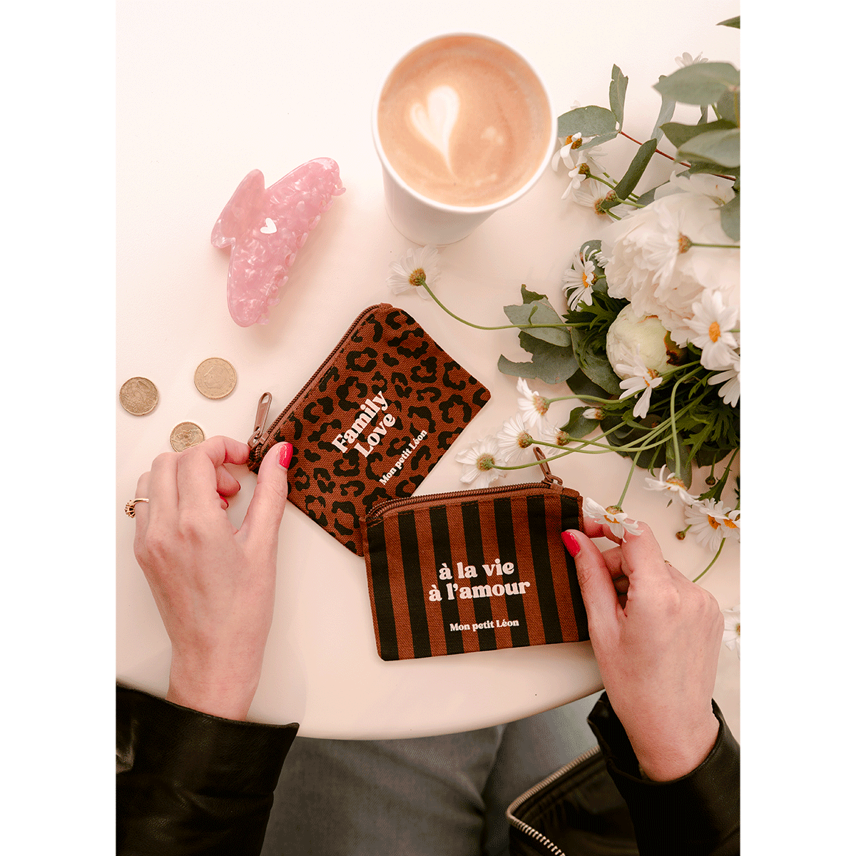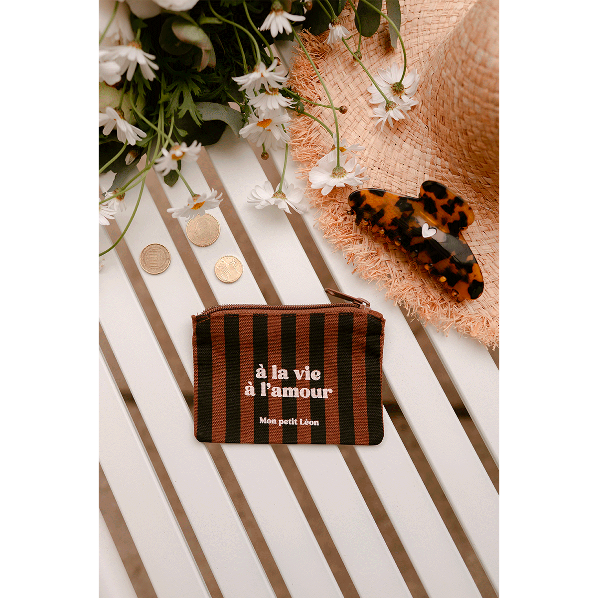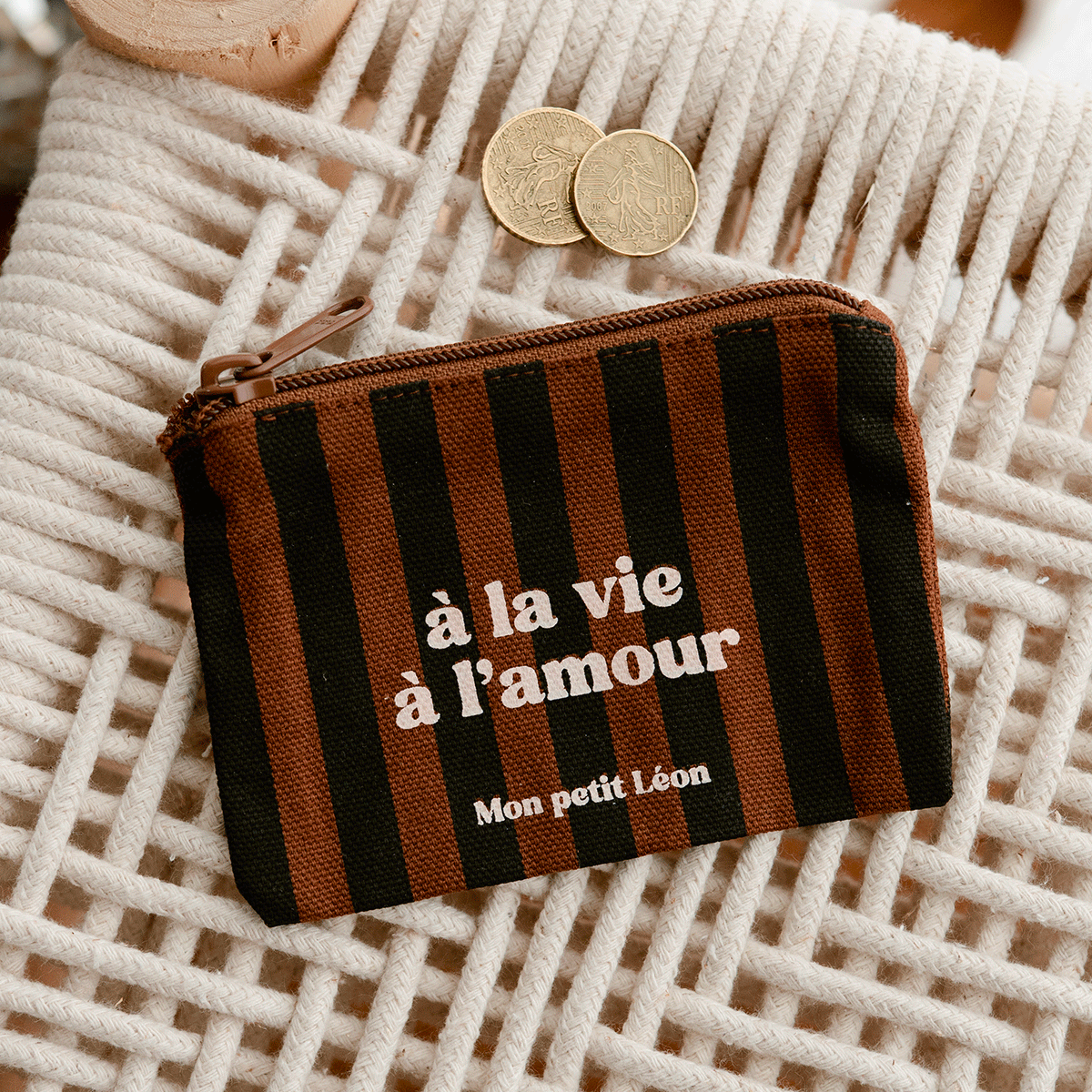 Porte-monnaie coton - Rayures marrons et noirs, à la vie à l'amour