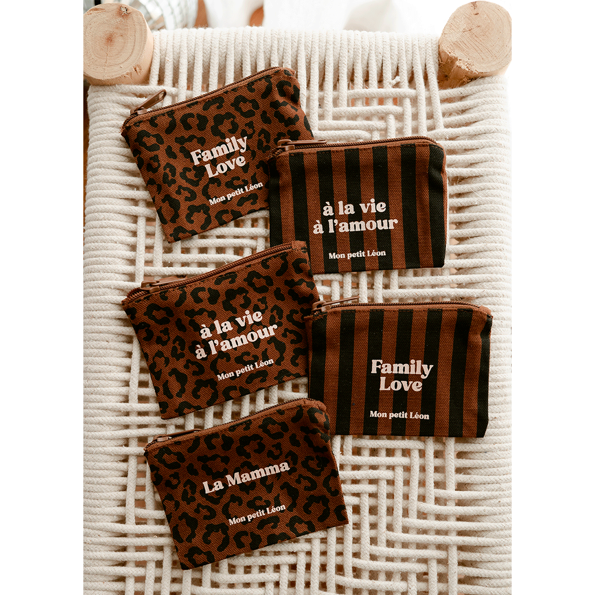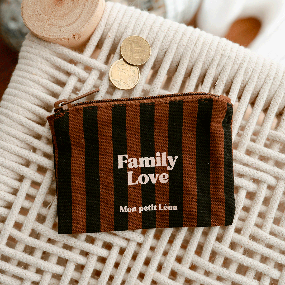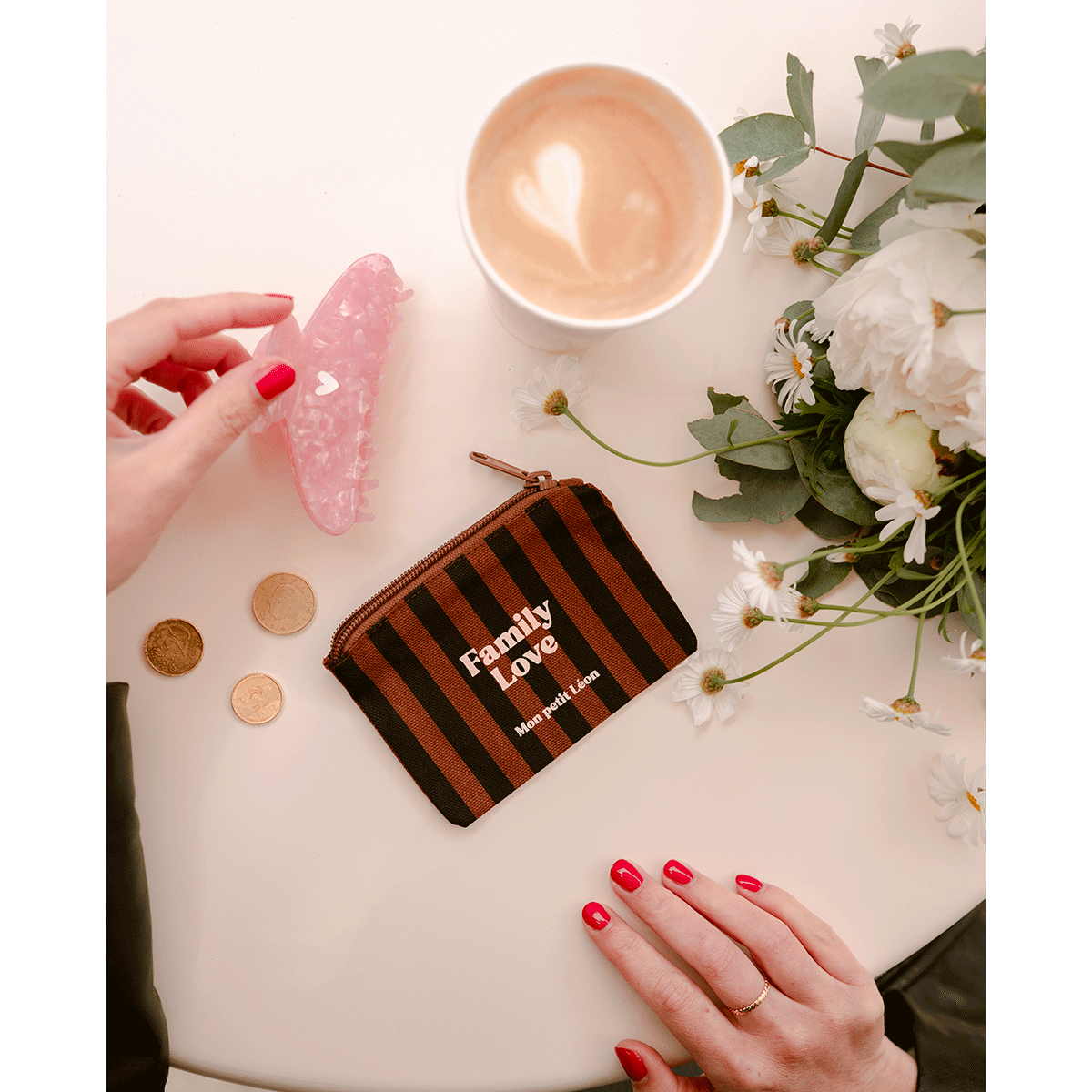 Porte-monnaie coton - Rayures marrons et noirs, Family Love