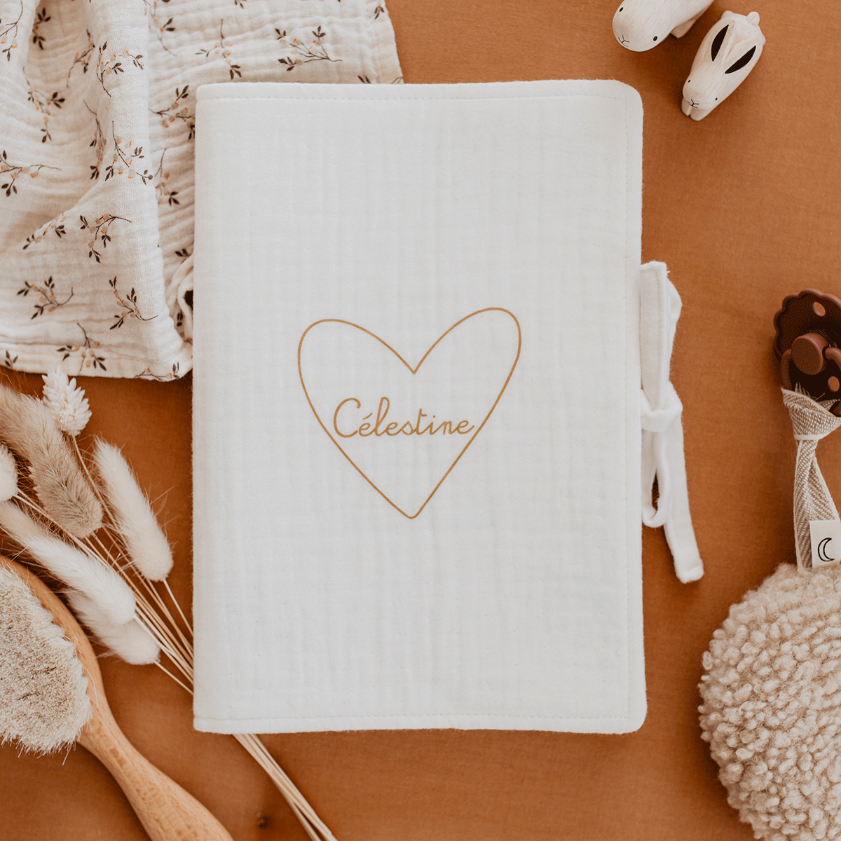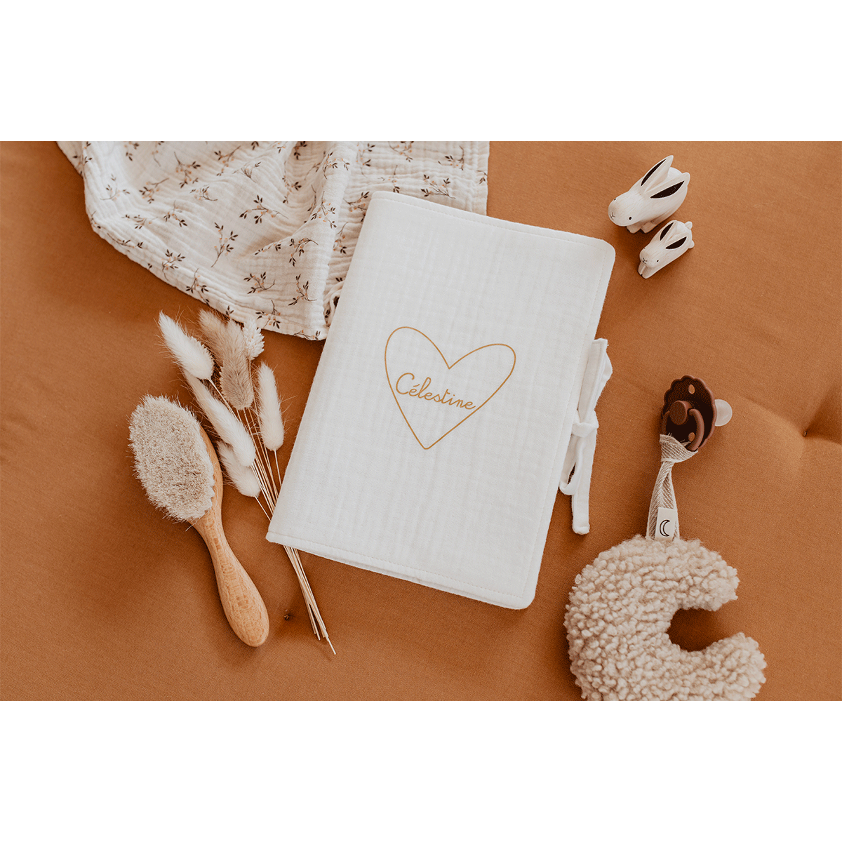 La beauté de la gaze de coton, la tendresse de cette police "Mon Coeur" si douce en forme de coeur pour un protège carnet de santé plein de douceur.