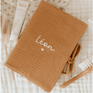 La beauté de la gaze de coton, la tendresse de cette police si douce pour un protège carnet de santé plein de douceur.