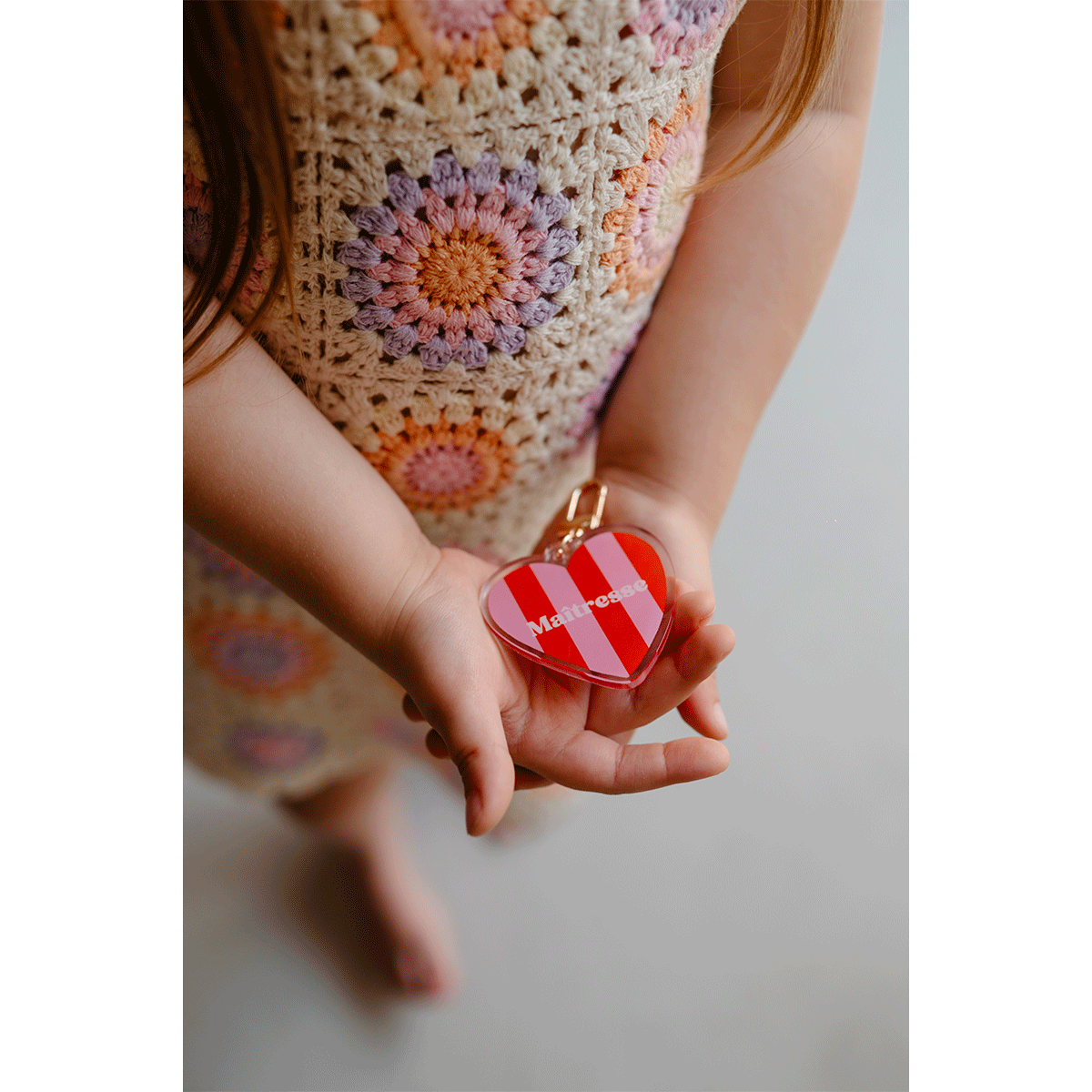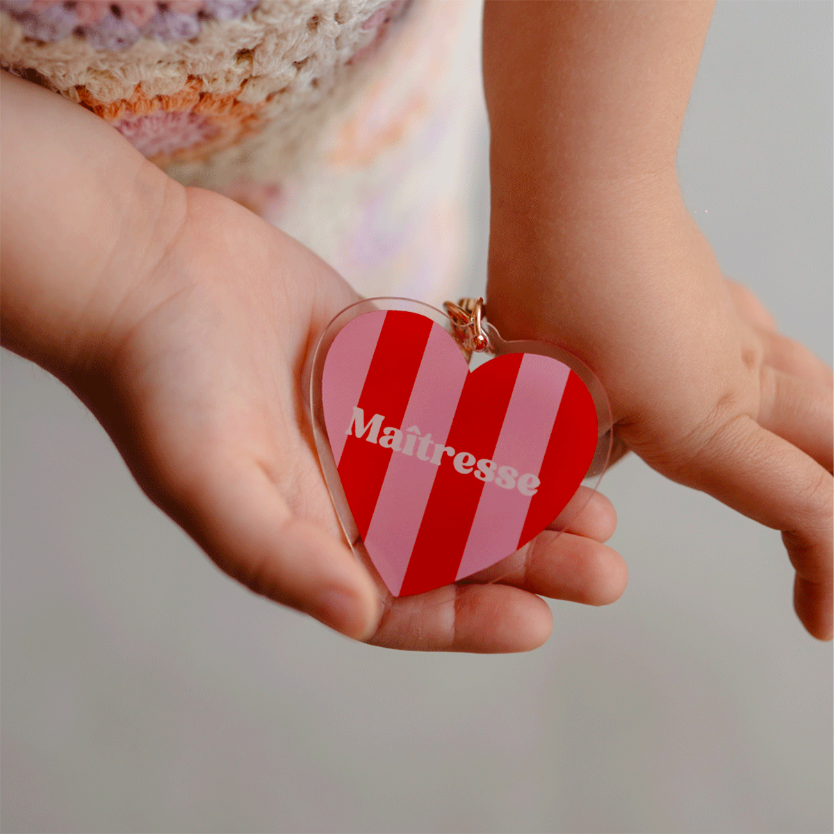 Ici la version rayures roses et rouges avec plusieurs inscriptions à choisir.