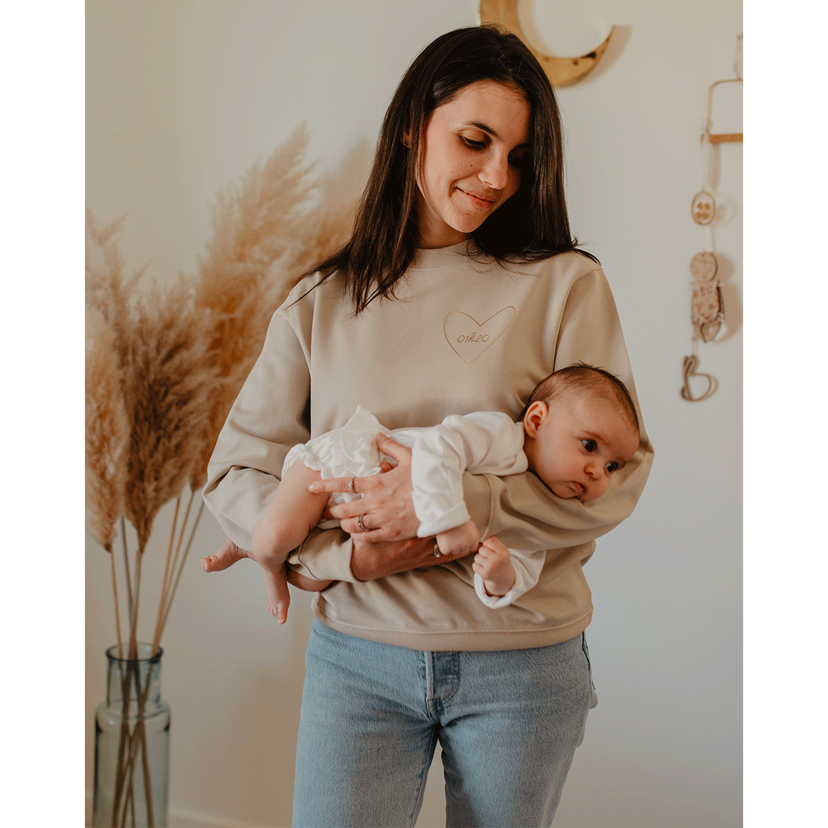 Sweat col rond Beige Mon coeur Femme