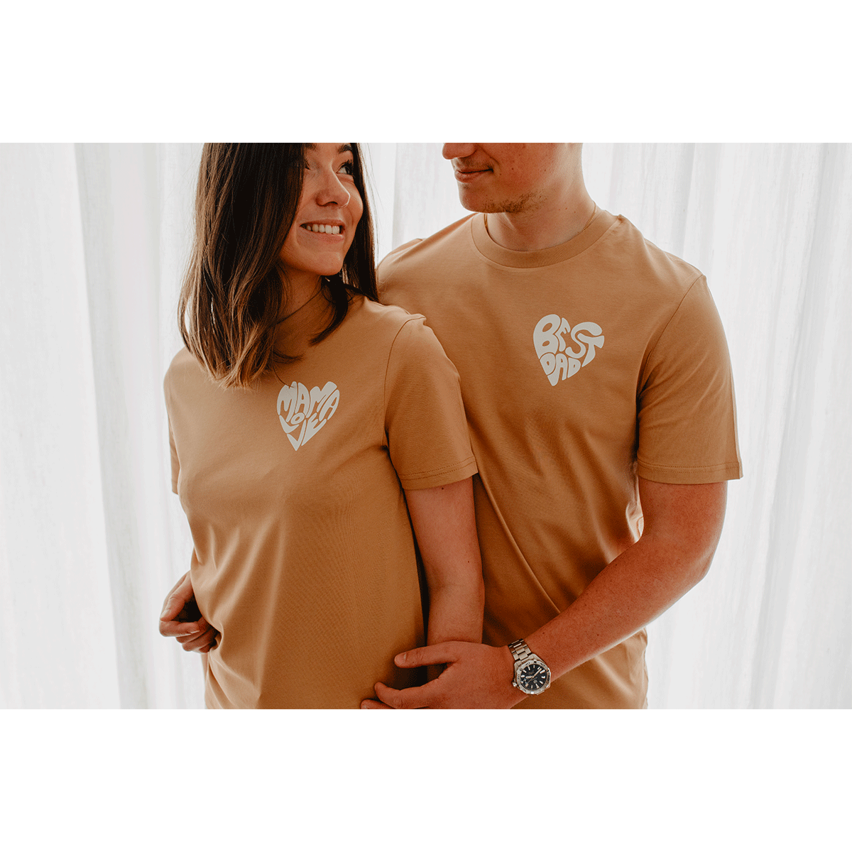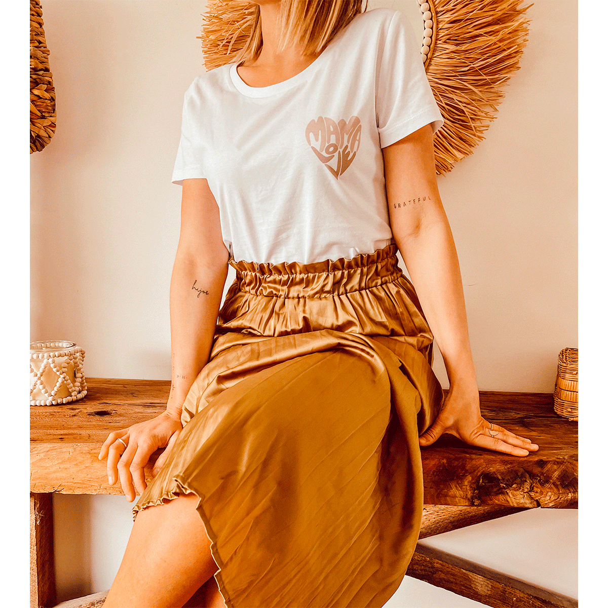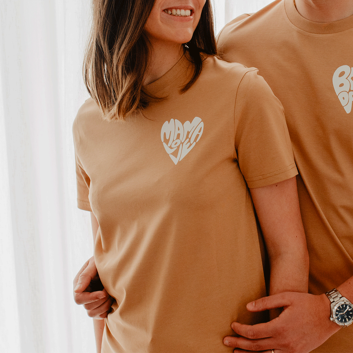 Le tee-shirt est disponible en trois jolis coloris : blanc, latté et sable.