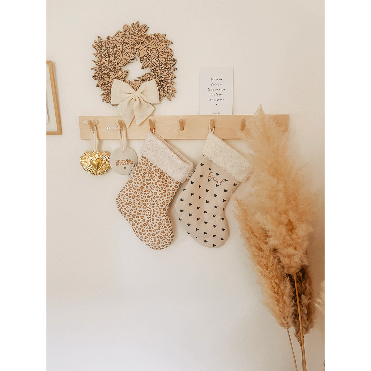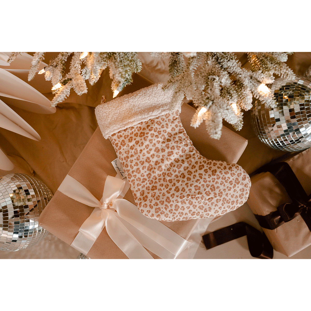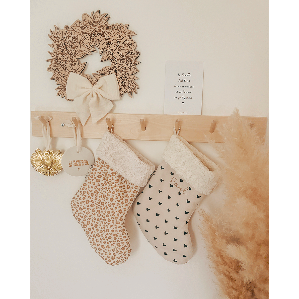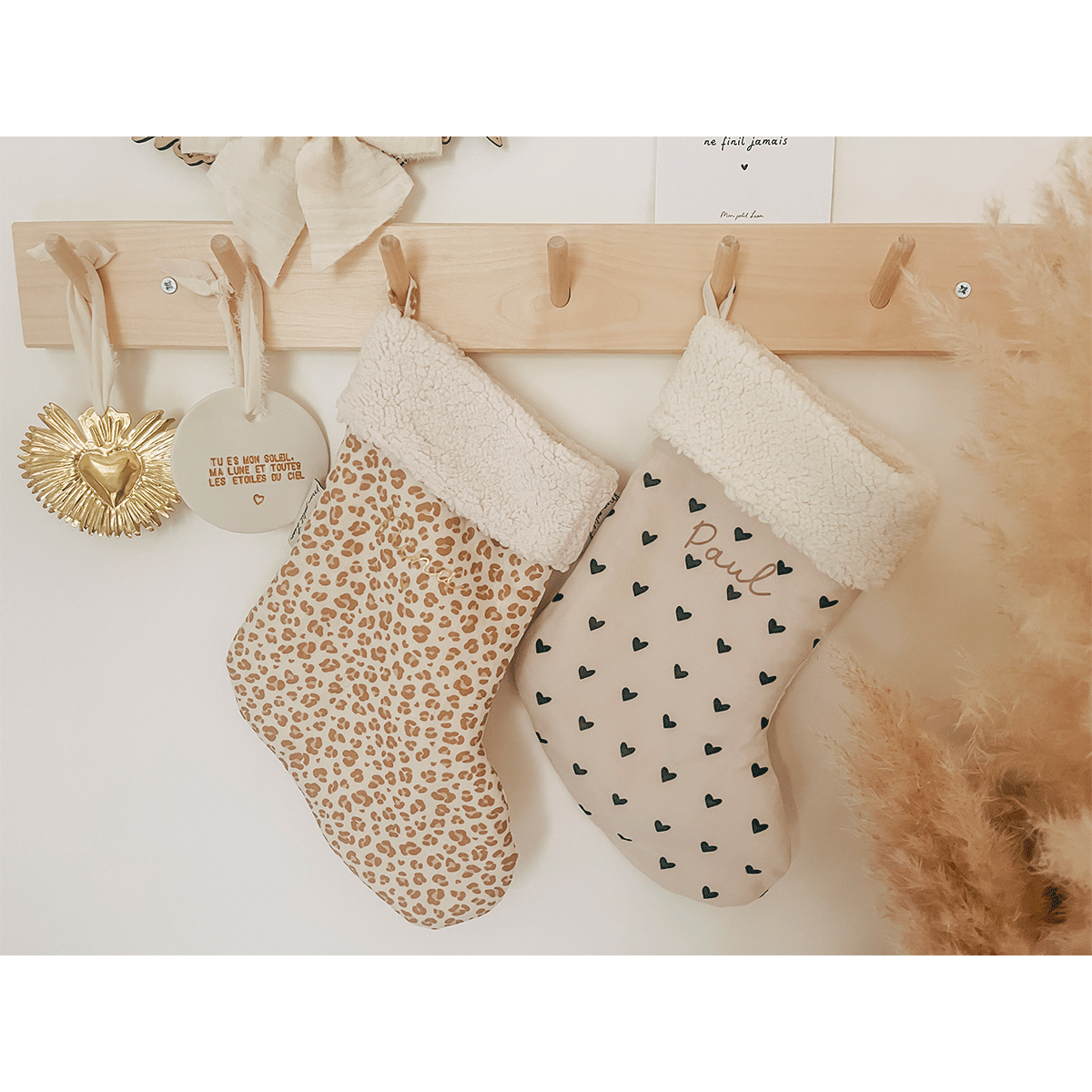 Un sublime Chaussette de Noël toute douce avec son extérieur en gaze de coton léopard ou petits noirs et son intérieur en moumoute.