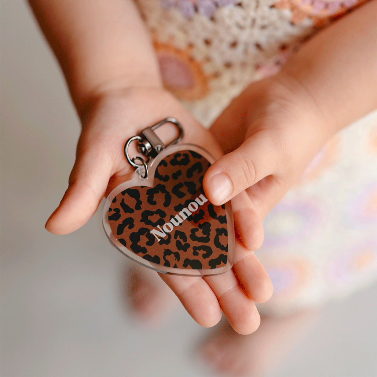 Notre coeur iconique s’habille de léopard marron foncé pour un porte-clé trop joli à offrir ou à s’offrir !