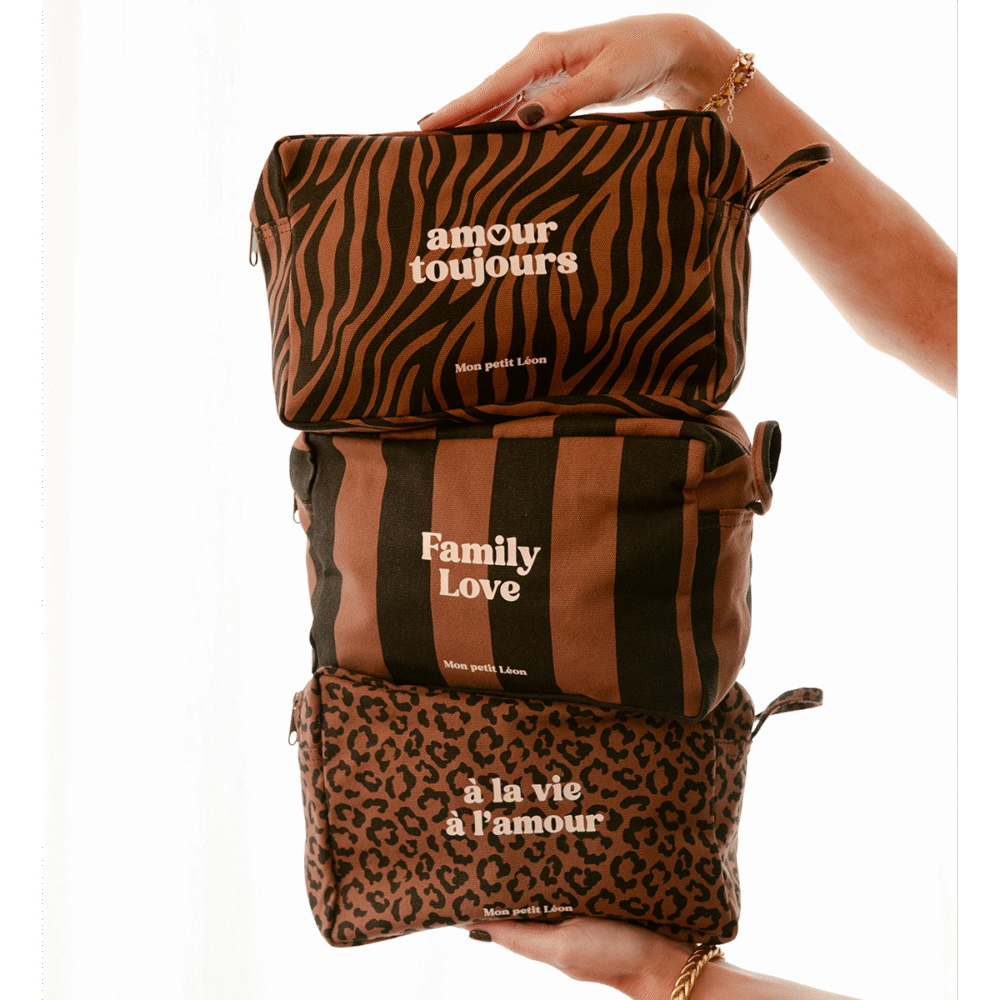 Une trousse de toilette en toile de coton épaisse et entièrement doublée en déperlant à l’intérieur.