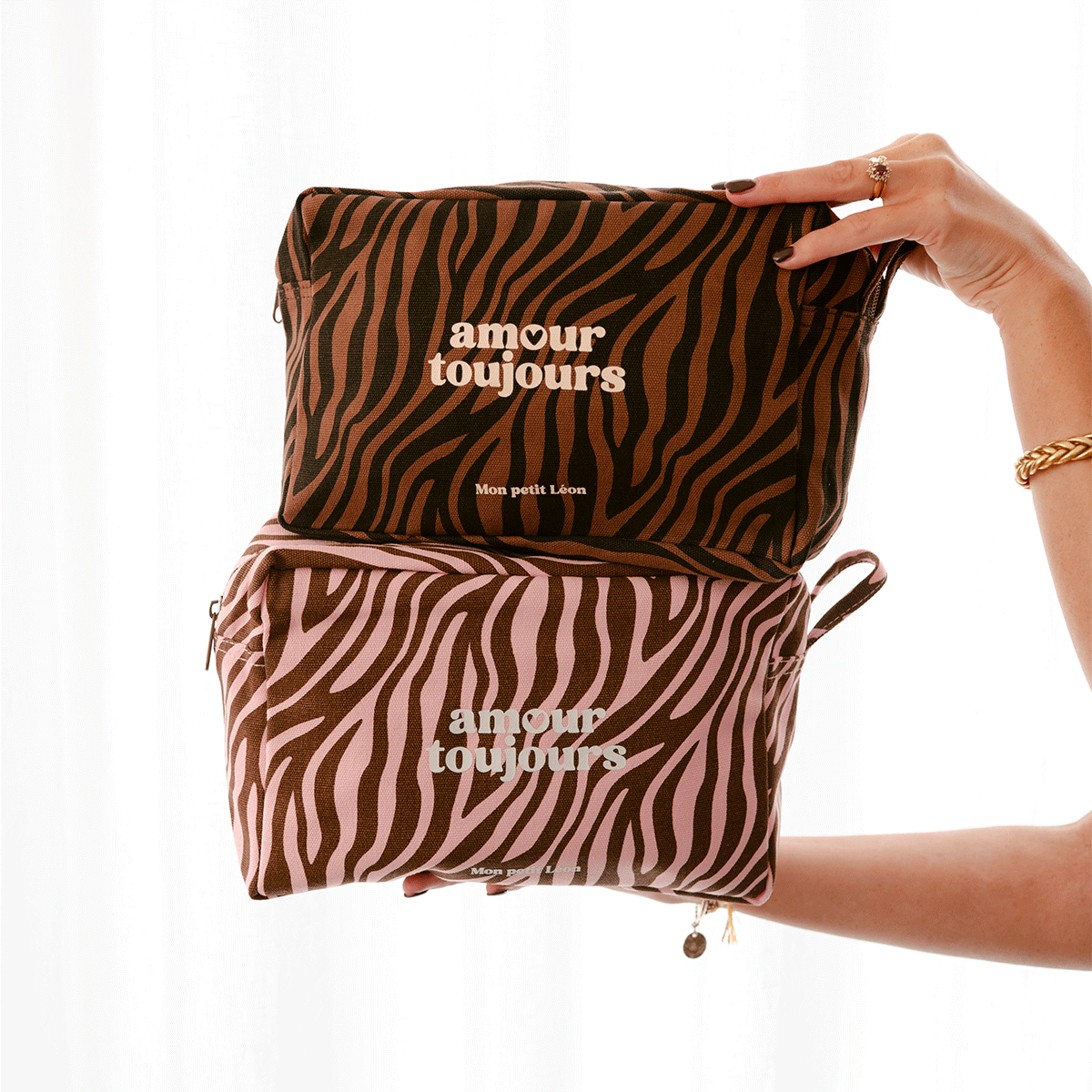 Une trousse de toilette en toile de coton épaisse et entièrement doublée en déperlant à l’intérieur.