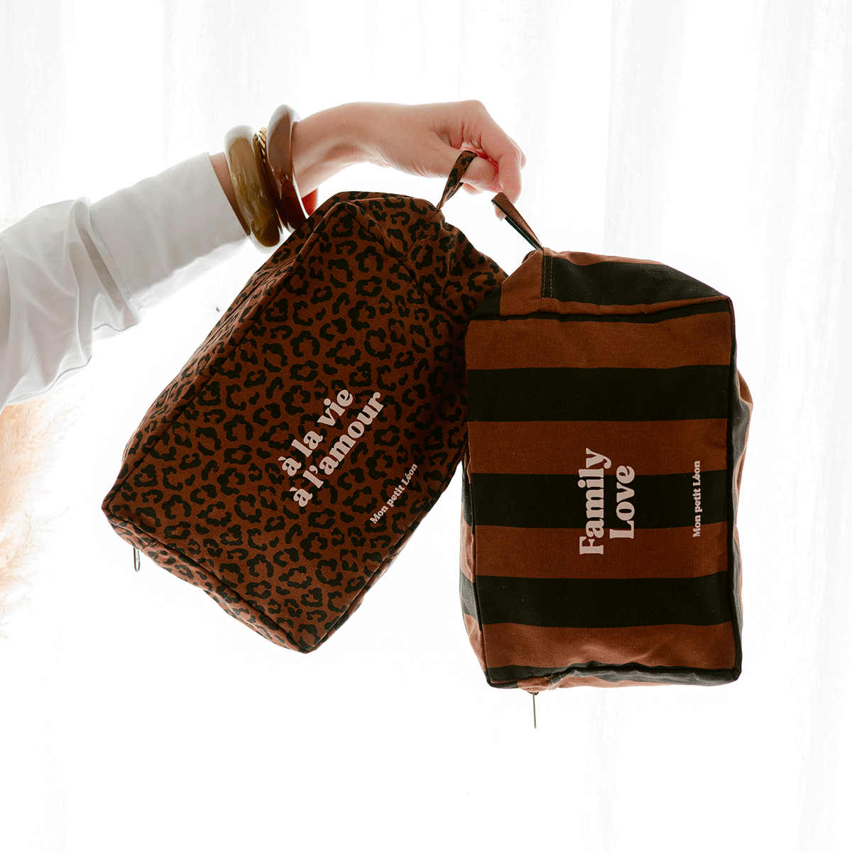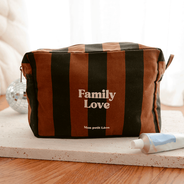 Trousse de toilette coton - Rayures marrons et noirs, Family Love